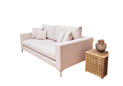 Диван АННИКА NEW 3-х местный с оттоманкой и светлыми опорами Серо-бежевый (Woolly 910), Рогожка