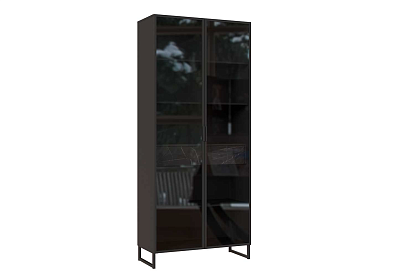Шкаф Чарли с витриной (правый, со шпонированными полками) Серый агат