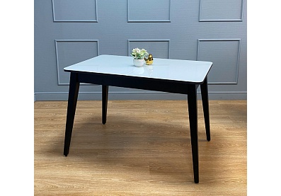 Стол обеденный Легро раздвижной черный/керамика мрамор белый Керамика
