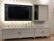 - Внутреннее наполнение: стеклополки 0,6 см за стеклянным фасадом и ЛДСП 1,6 см за глухим фасадом;