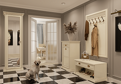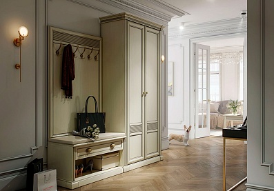 - В гостиной есть вся необходимая мебель для хранения: два напольных шкафа, тумба с раздвижным механизмом и полка. Для самого важного всегда найдется место;