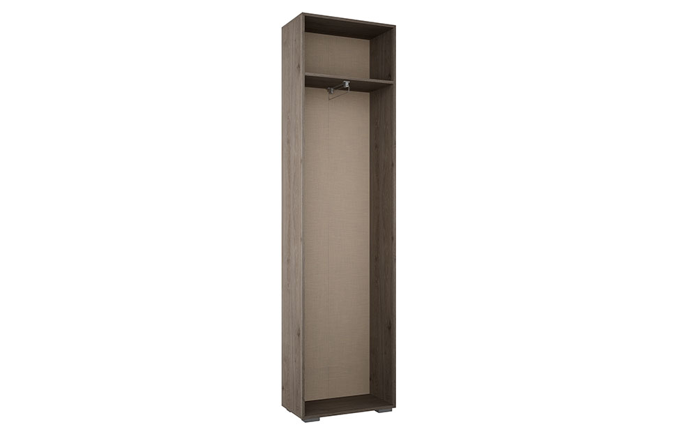 - Одностворчатый шкаф укомплектован полкой и выдвижной штангой для одежды;