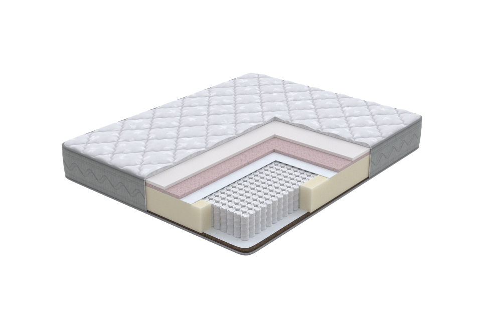 В составе комфортных слоев неолатекс в сочетании с эко ППУ с одной стороны и Би-кокос с другой стороны матраса. Защитным слоем при их взаимодействии с независимыми пружинами служит спандбонд.