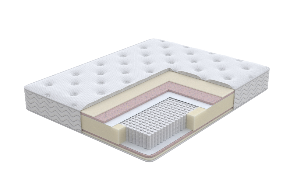 Матрас на основе интеллектуального блока независимых пружин обеспечивает необходимую поддержку каждого участка тела спящего. Матрас двусторонний. Жесткость средняя с обеих сторон. Сочетание современных высококачественных материалов Ортофом и Эко ППУ придает матрасу оптимальную среднюю жесткость. Защитным слоем при взаимодействии с независимыми пружинами служит спандбонд. Чехол матраса выполнен из трикотажной ткани, простеганный на дополнительном слое Ортофом.