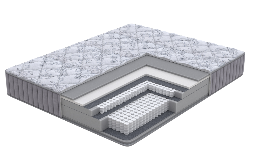 Высокий односторонний матрас премиум класса с низкой жесткостью, обеспечивает неповторимый уровень комфорта. Благодаря современным материалам с функцией памяти, матрас способен подстраиваться под индивидуальные особенности вашего тела. В основе матраса уникальная система из двух блоков независимых пружин с повышенным ортопедическим эффектом. Нижний пружинный блок состоит из 512 независимых пружин, он обладает ортопедическими свойствами и берет на себя большую часть нагрузки. Верхний блок состоит из 1000 пружин на спальное место, которые равномерно распределяют нагрузку и обеспечивают точечную поддержку тела.