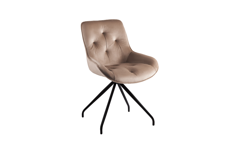 Стул-кресло Сохо с поворотным механизмом прекрасно впишется в любой интерьер и комнату. Такой стул можно использовать как в качестве обеденного стула, так и в виде рабочего кресла к письменному столу.Обивка из велюра в актуальном бежевом оттенке гармонирует с металлическими ножками черного цвета. Такие стулья украсят современные интерьеры, а также пространства в стиле эклектики.