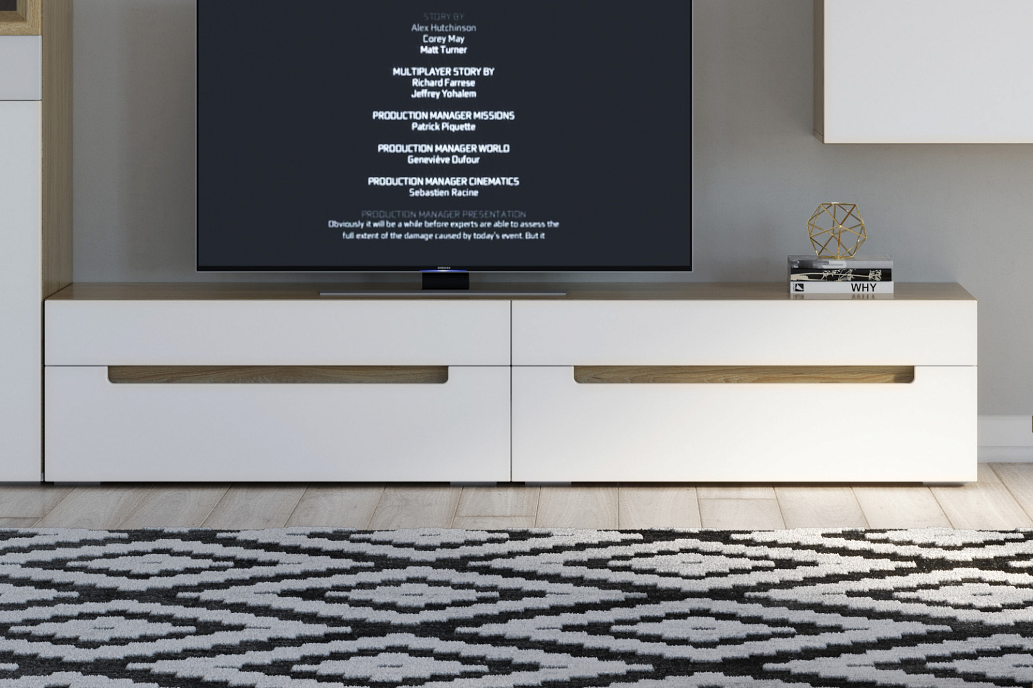 – описание: размер 37.2x180.2x41.3 см, назначение под тв, стиль современный, минимализм, цвет швейцарский вяз, белый.
