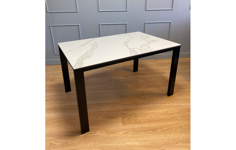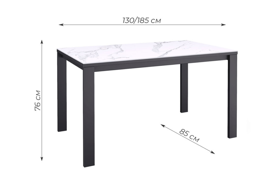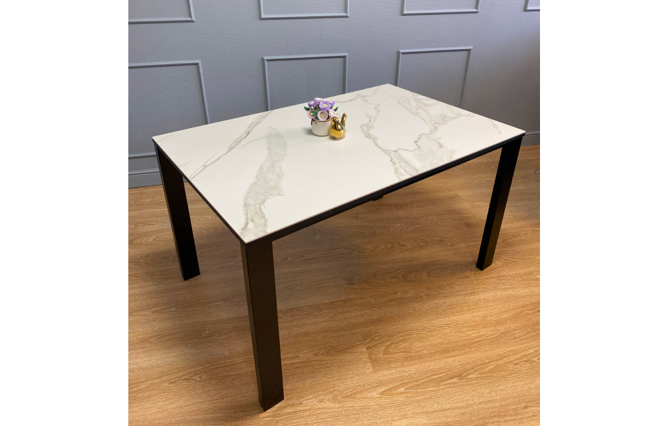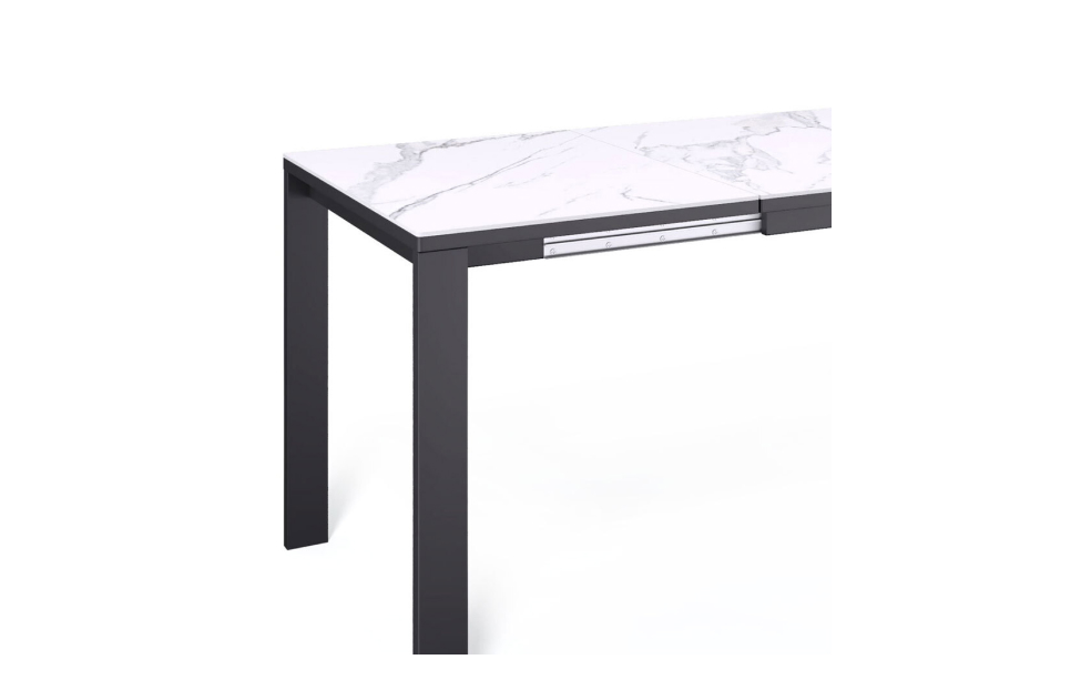 Стол обеденный Легро раздвижной черный/керамика мрамор белый